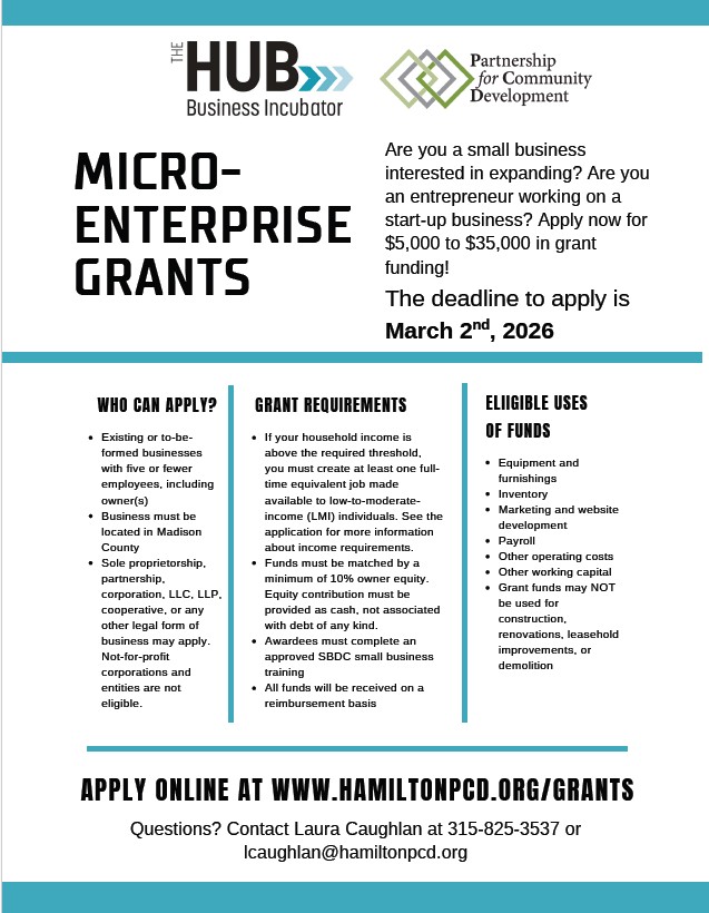 Madison County has been awarded a second round of Microenterprise CDBG funding, providing $5,000 to $35,000 in grant funding for eligible existing or start-up businesses with five or fewer employees (including the owner). This is a strong opportunity for very small businesses looking to expand, stabilize, or launch.